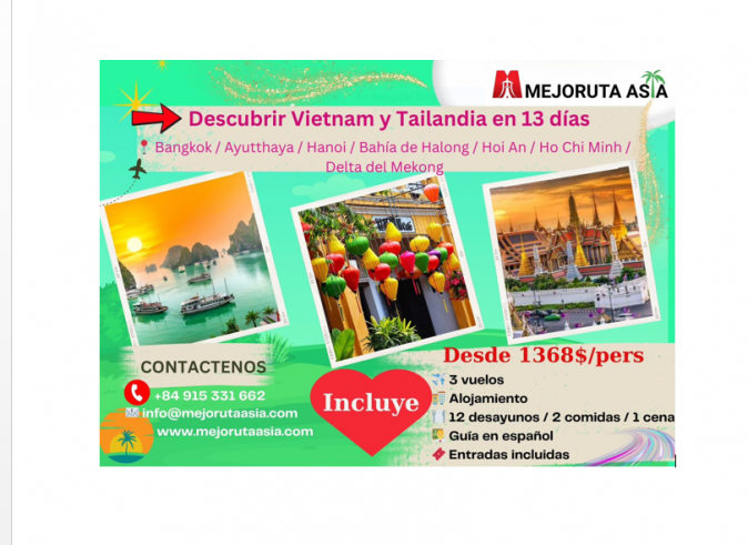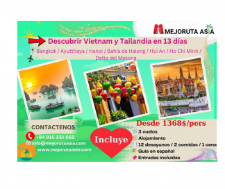 VIAJE GRUPAL descubriendo 2 países (Tailandia y Vietnam) en 13 días, incluyendo 3 vuelos, hoteles súper céntricos, visitas guiadas, guías en español.....desde 1368 USD por persona