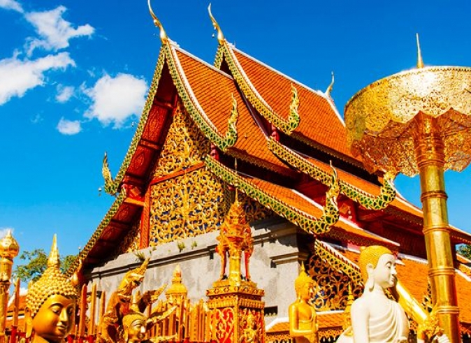 Desayuno en el hotel. Traslado al aeropuerto de Bangkok para tomar el vuelo a Chiang Mai. Llegada, visitar los templos más preciosos de Chiang Mai, tales como: