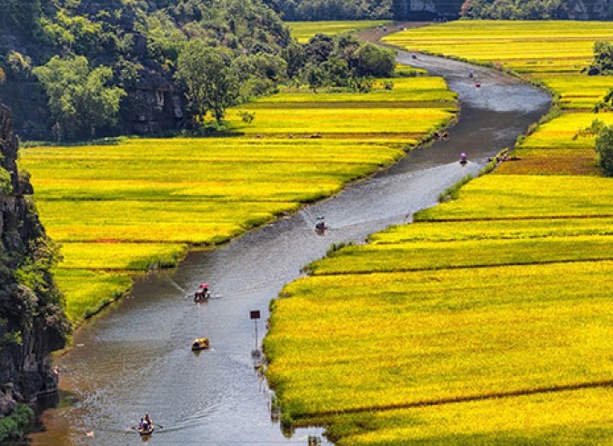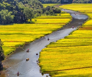 A continuación, visitamos la Pagoda Bich Dong en donde veremos tres pagodas antiguas del siglo XVII. Realizamos un recorrido en un pequeño barco por Tam Coc a lo largo del Río Ngo Dong a tres grutas llamadas también “Bahía de Ha Long seca” o “Bahía de Ha Long entre los arrozales”, un paisaje impresionante lleno de rocas, cuevas y arrozales. Al finalizar todo, traslado de vuelta a Hanoi para alojamiento.