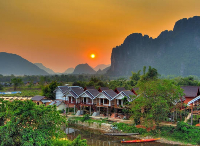 Luego, continuaremos por el Lao-China Express hasta Vang Vieng. Llegaremos a Vang Vieng, una pequeña ciudad situada en una curva del río Nam Song. Su impresionante paisaje, con una mezcla de tranquilas aguas fluviales y afloramientos de piedra caliza, permanece intacto, a pesar de los recientes desarrollos con la llegada del turismo. Disfrute de un poco de tiempo libre después del check-in en el hotel. Noche en Vang Vieng