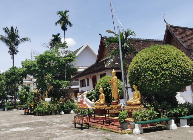 Después del desayuno, visitamos el Mercado matutino, donde vimos productos tan diversos como piel seca de búfalo, té local y salitre entre los pollos, verduras y tejidos de las tribus de las Luego, visitamos el magnífico Wat Xiengthong con sus techos que llegan hasta el suelo, que representa la arquitectura clásica de Laos. Continuamos con la visita al Centro de Etnología y Artes Tradicionales (cerrado los lunes), Wat Visoun, el templo más sagrado de la ciudad, que fue reconstruido íntegramente en 2087 tras ser destruido por las Banderas Negras invasoras del sur de China, y Wat Aham, que se construyó por primera vez en el siglo XVI.