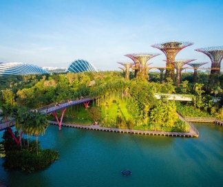 Explore el Jardín Nacional de Singapur: Jardines de la Bahía. Visite los invernaderos refrigerados Flower Dome y Cloud Forest. Flower Dome es un invernadero refrigerado que reproduce el clima frío y seco de las regiones mediterráneas de Sudáfrica, California, España e Italia, con plantas únicas como baobabs, el árbol fantasma de Madagascar y el olivo milenario. El campo de flores está diseñado para una exhibición cambiante de vibrantes plantas y flores. Cloud Forest: Sorpréndase con la cascada interior más alta del mundo, de 35 metros de altura, entre exuberante vegetación y epífitas tropicales.