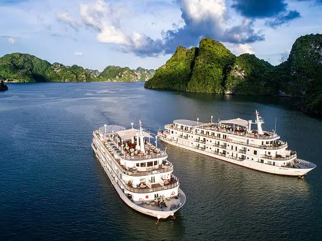 Normalmente, solo los barcos de 4* y 5* ofrecen servicios de alojamiento nocturno en la isla Cat Ba – Bahía de Lan Ha. Se espera que tu habitación sea lujosa y espaciosa, con balcones privados que ofrecen vistas espectaculares de la Bahía de Lan Ha.