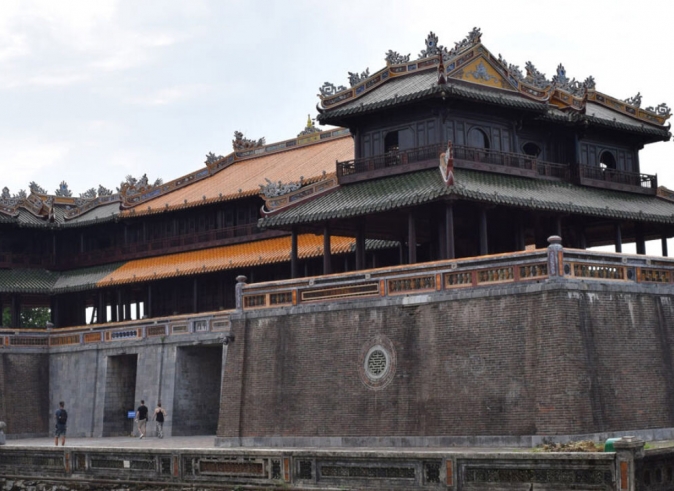 Café da manhã no hotel. Início das visitas em Hue, mundialmente reconhecida como Patrimônio Histórico e Cultural da Humanidade. Visitaremos a Cidade Imperial, que foi a sede da última Dinastia Nguyen, que governou entre 1802 e 1945. Depois, faremos um passeio relaxante no barco dragão privado pelo Rio Perfume, para sentir a serenidade e a beleza dessa cidade verde e romântica. Parada na Pagoda dos Monges Pacifistas Thien Mu, na margem do rio, para tirar fotos com um dos símbolos de Hue.