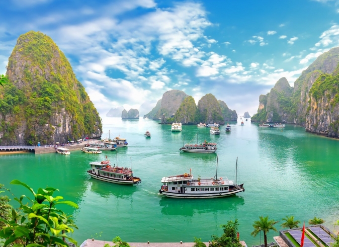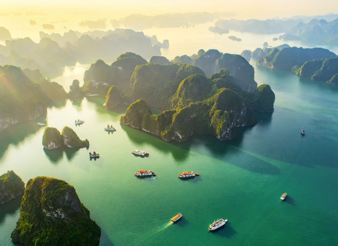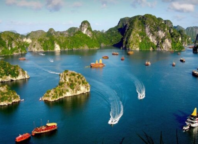Después del desayuno, hacemos un recorrido por carretera de 2,5 – 3 horas hasta la bahía de Ha Long – “donde el dragón desciende al mar” – es una de las 7 nuevas maravillas de la naturaleza del mundo. A la llegada, subir al crucero y el personal de a bordo los recibirá con una bebida de bienvenida justo antes de acomodarlos en sus cabinas. El barco inicia el recorrido por la bahía, declarada Patrimonio de la Humanidad por la UNESCO.