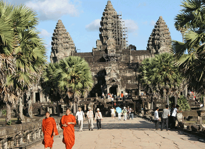 Por la tarde, visitamos el Patrimonio de la Humanidad de Angkor Wat – el edificio religioso más grande del mundo. A continuación, tendrá la oportunidad de disfrutar de una espectacular puesta del sol desde el templo de Phnom Bakheng. Regreso al hotel. Noche en Siem Reap.