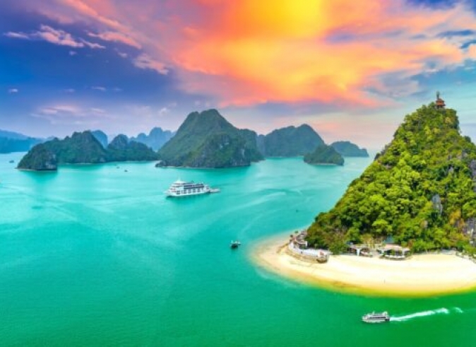 Después del desayuno, hacemos un recorrido por carretera de 2,5 – 3 horas hasta la bahía de Ha Long – “donde el dragón desciende al mar” – es una de las 7 nuevas maravillas de la naturaleza del mundo. A la llegada, subir al crucero y el personal de a bordo los recibirá con una bebida de bienvenida justo antes de acomodarlos en sus cabinas. El barco inicia el recorrido por la bahía, declarada Patrimonio de la Humanidad por la UNESCO.
