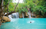 Después del almuerzo, traslado en vehículo privado a la cascada Khouang Si. En el camino, puede visitar al grupo étnico minoritario de Laos en Ban Na Ouane Village, H'Mong Village. Una vez en las cataratas, realice una caminata tranquila por el parque nacional hacia las cataratas Khouang Si y pase por el centro de rescate de osos asiáticos. Disfrutará sintiendo la niebla de las frescas aguas turquesas de las diferentes cataratas. Es posible nadar en las refrescantes aguas. Regrese a la ciudad al final de la tarde para ver el atardecer en Wat Phabath. Noche en Luang Prabang