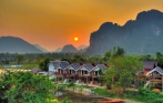 Una vez que hayas terminado de navegar en kayak, tomaremos un camión hasta la famosa Laguna Azul, donde tendrás la oportunidad de nadar en la laguna o simplemente relajarte en las pequeñas cabañas de bambú. Después, regresaremos a Vang Vieng para finalizar el recorrido. Noche en Vang Vieng