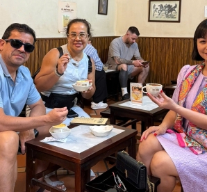 Por la tarde, vamos a la calle de trenes para tomar un café/jugo por su cuenta viendo pasar el tren justo a su lado. Luego, continuar la visita a la pagoda Tran Quoc – la pagoda más antigua del budismo en Hanoi. Luego, volver al casco antiguo dando un paseo relajante por el lago céntrico de Hoan Kiem. Ver el Teatro de La Ópera, la Catedral de San José, tomar el café con huevo típico vietnamita en Café Giang desde 1946 (pago por su cuenta)… A la hora indicada, traslado a estación de los trenes para ir a Sapa. Noche en el tren con cabina privada para 4 personas.