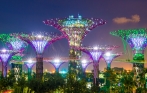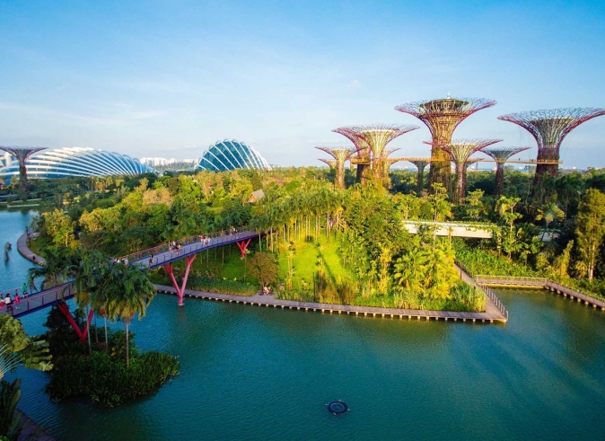 Explore el Jardín Nacional de Singapur: Jardines de la Bahía. Visite los invernaderos refrigerados Flower Dome y Cloud Forest. Flower Dome es un invernadero refrigerado que reproduce el clima frío y seco de las regiones mediterráneas de Sudáfrica, California, España e Italia, con plantas únicas como baobabs, el árbol fantasma de Madagascar y el olivo milenario. El campo de flores está diseñado para una exhibición cambiante de vibrantes plantas y flores. Cloud Forest: Sorpréndase con la cascada interior más alta del mundo, de 35 metros de altura, entre exuberante vegetación y epífitas tropicales.